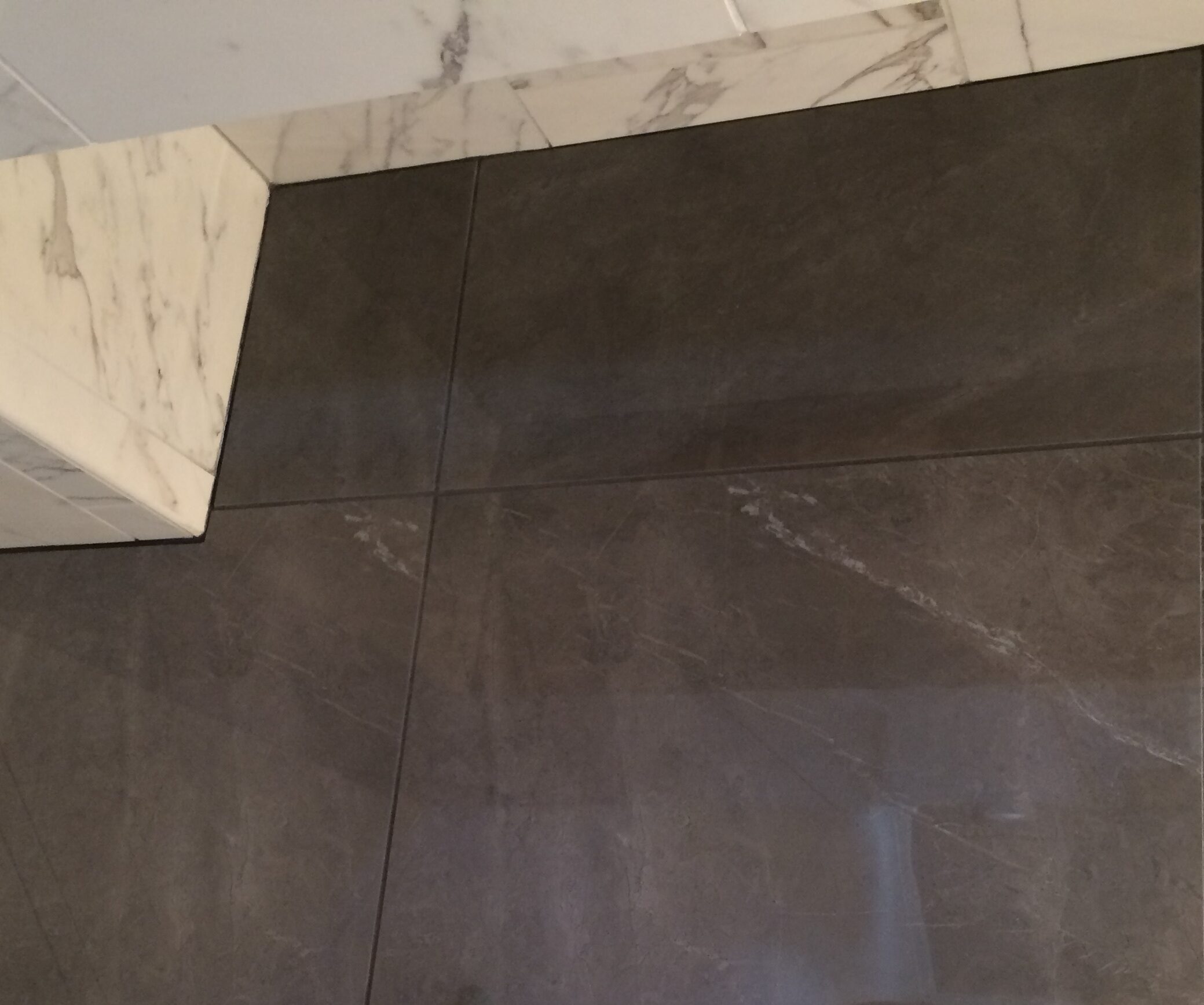In this master bath remodel located in a luxe high-rise apartment on the plaza we needed to create a wow look on a reasonable budget, so I covered the floors and walls with a marble look tile from Italy to give it a wow when you walked in the bathroom.